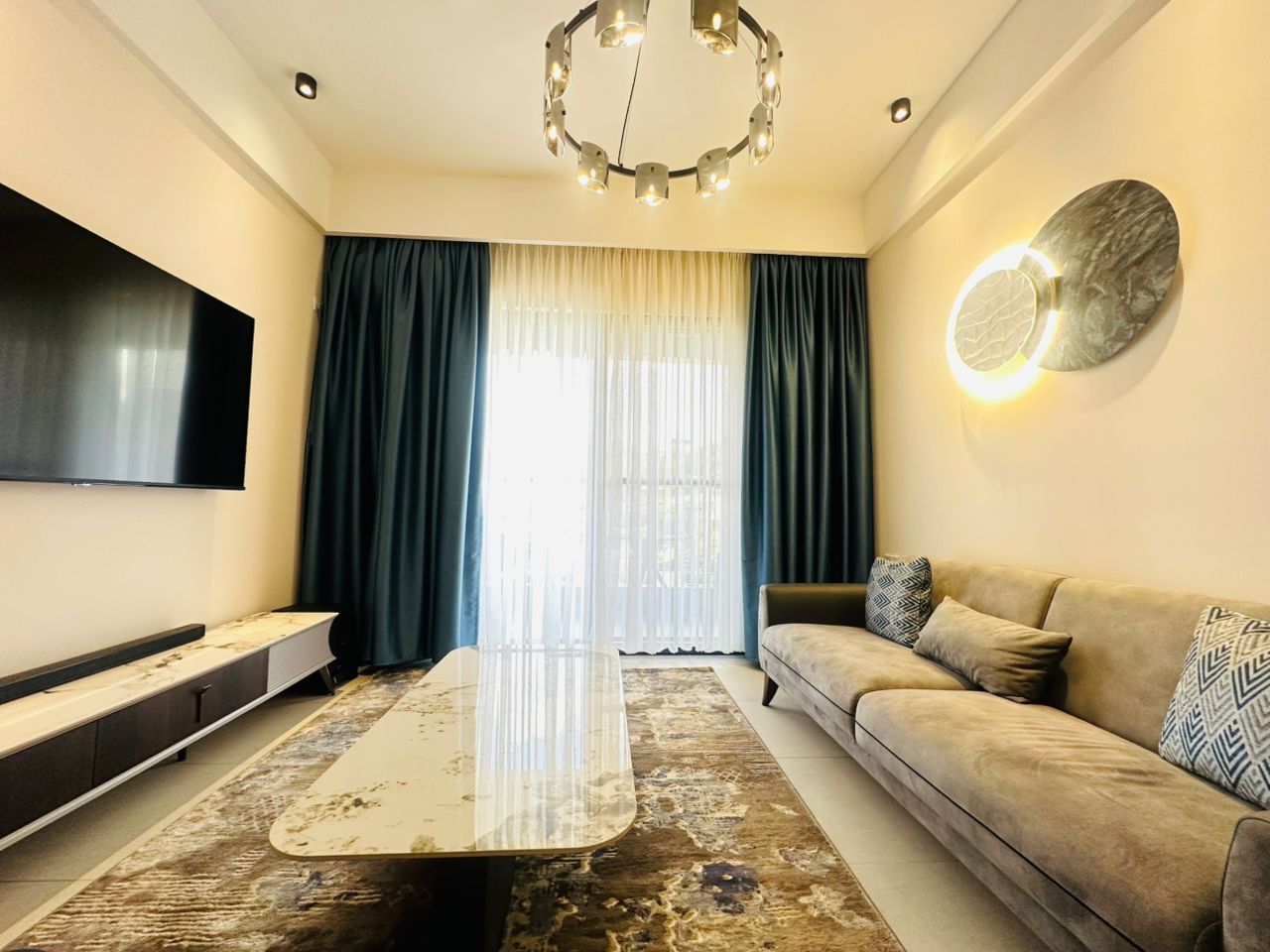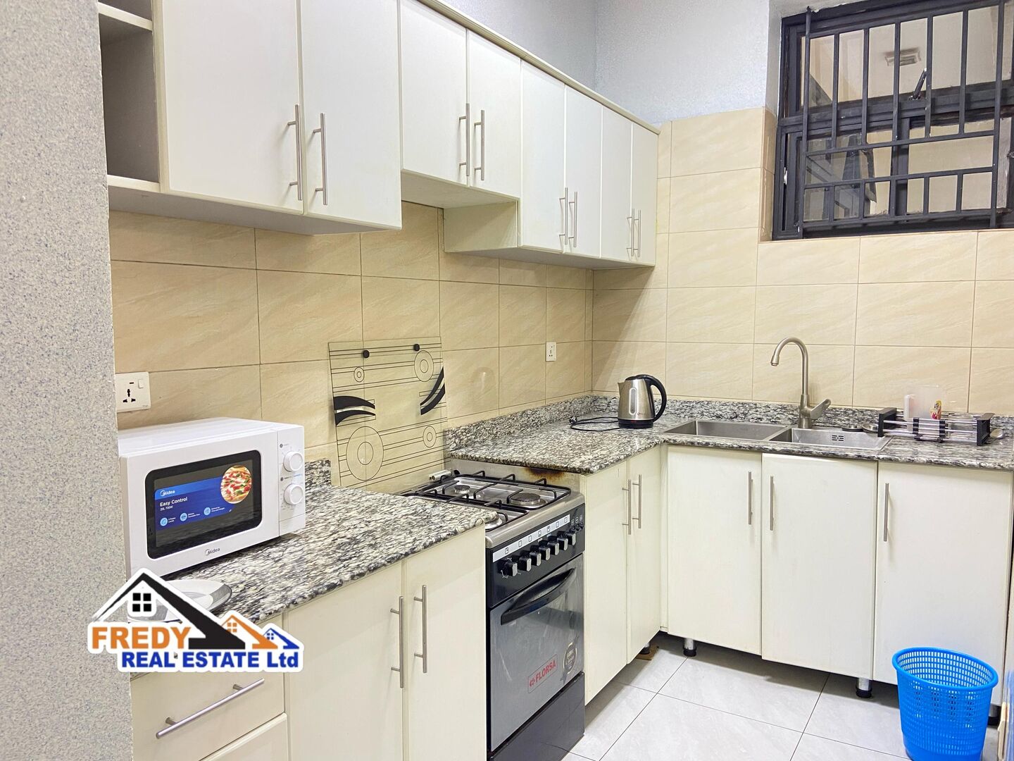 One of good Apartment rent house in Kanombe, In the calm room, soft light shines on a cozy bed with a warm blanket, fluffy pillow, tiny plants, and soft colors, while a sweet smell drifts from a cute mug in the quiet space.