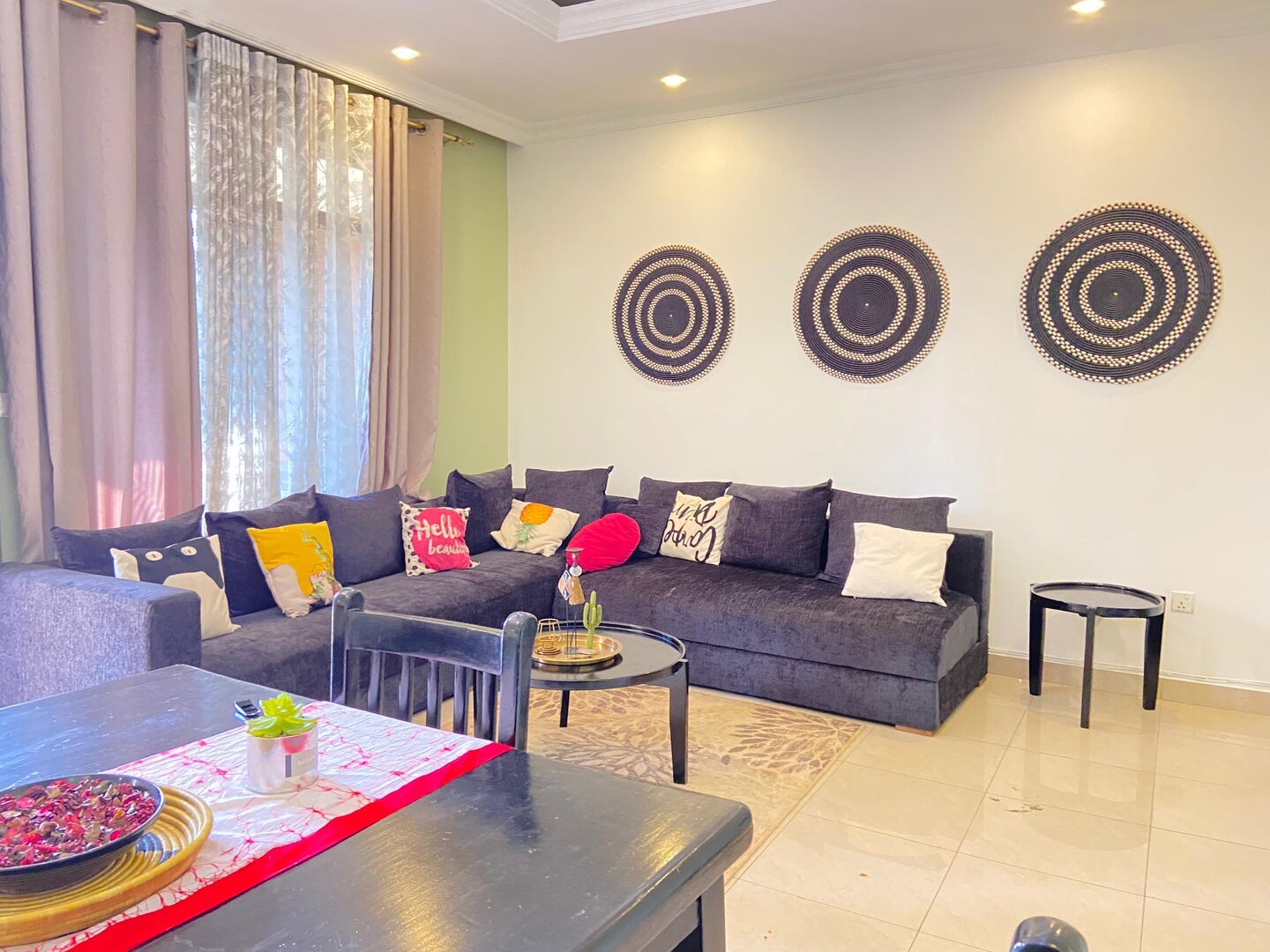 One of good Apartment rent house in Kibagabaga In the calm room, soft light shines on a cozy bed with a warm blanket, fluffy pillow, tiny plants, and soft colors, while a sweet smell drifts from a cute mug in the quiet space.
